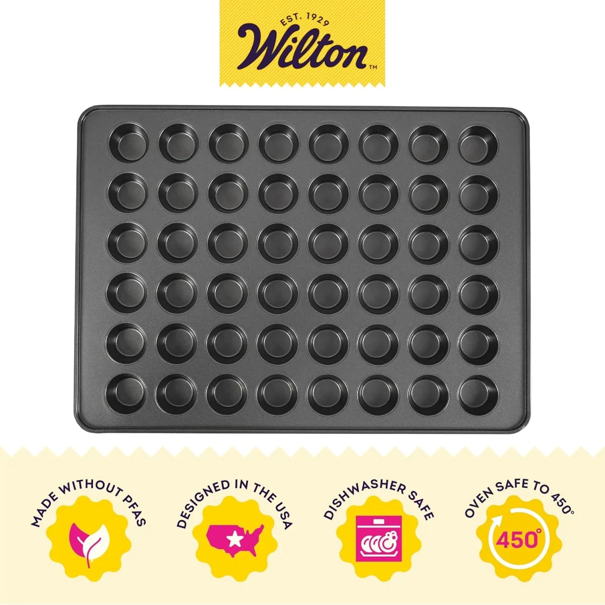 Úselo para hornear 48 unidades de ua sola vez . le ahorra tiempo y maximiza el espacio de su horno, mientras que el recubrimiento antiadherente permite que sus dulces horneados salgan con una limpieza mínima.
